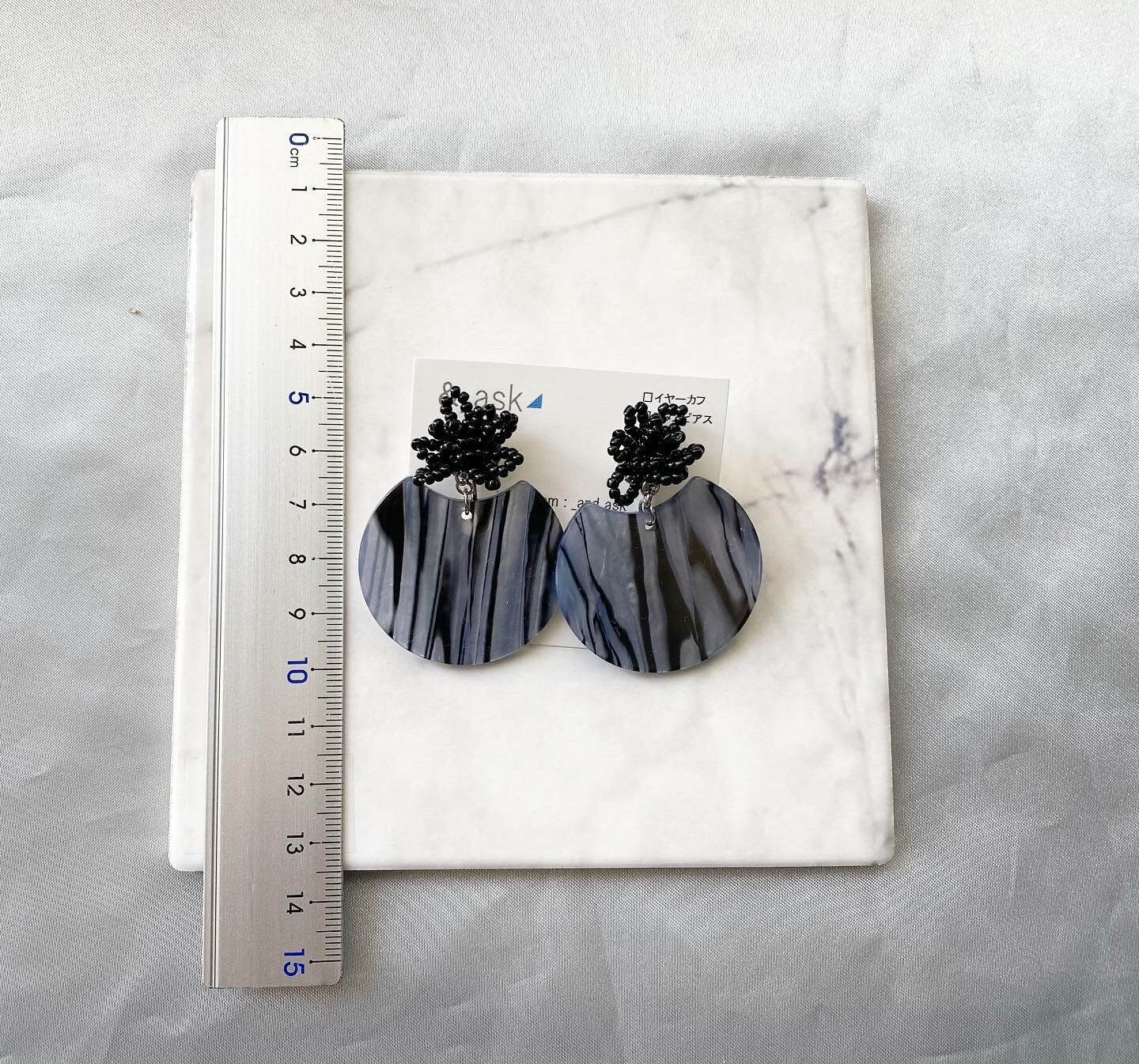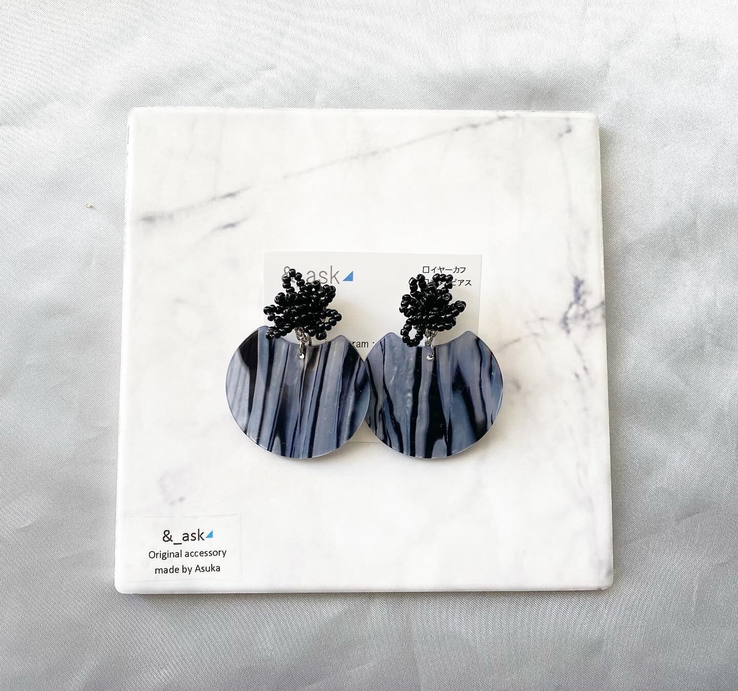 まんまるの形に少し欠けたようなデザインパーツにビーズでお花をデザイン