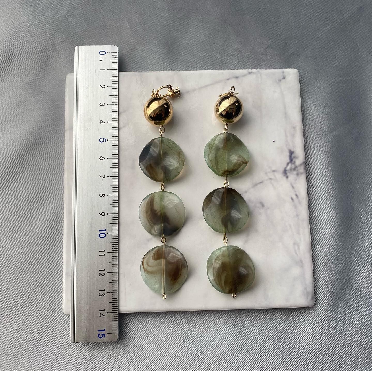 ひらひら花びらのようなアクリルパーツにメタリックゴールドを合わせて華やかな印象に