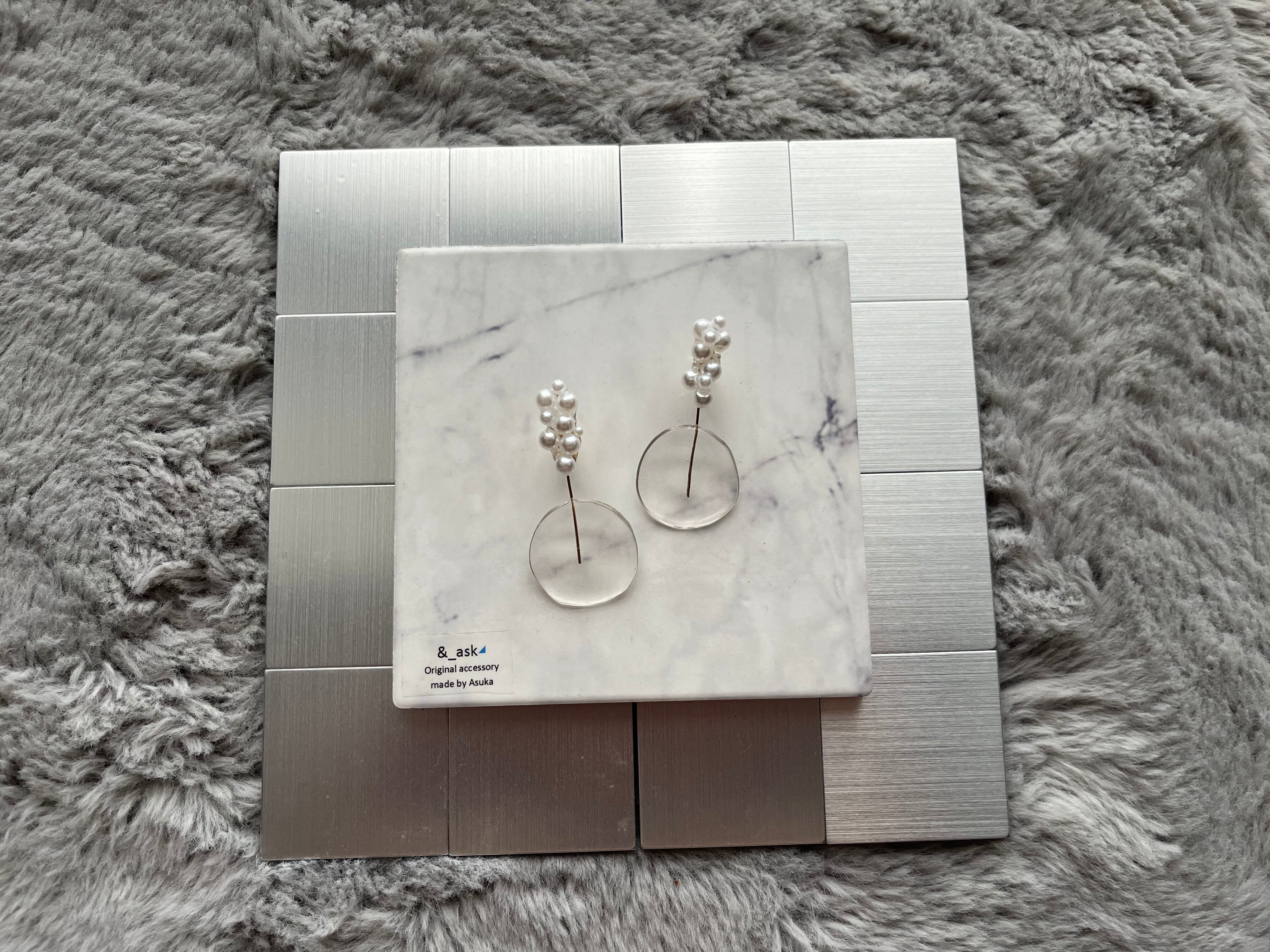 水たまりをイメージしたモチーフと万能パールを合わせました 服装を選ばずどんなスタイルとも合います